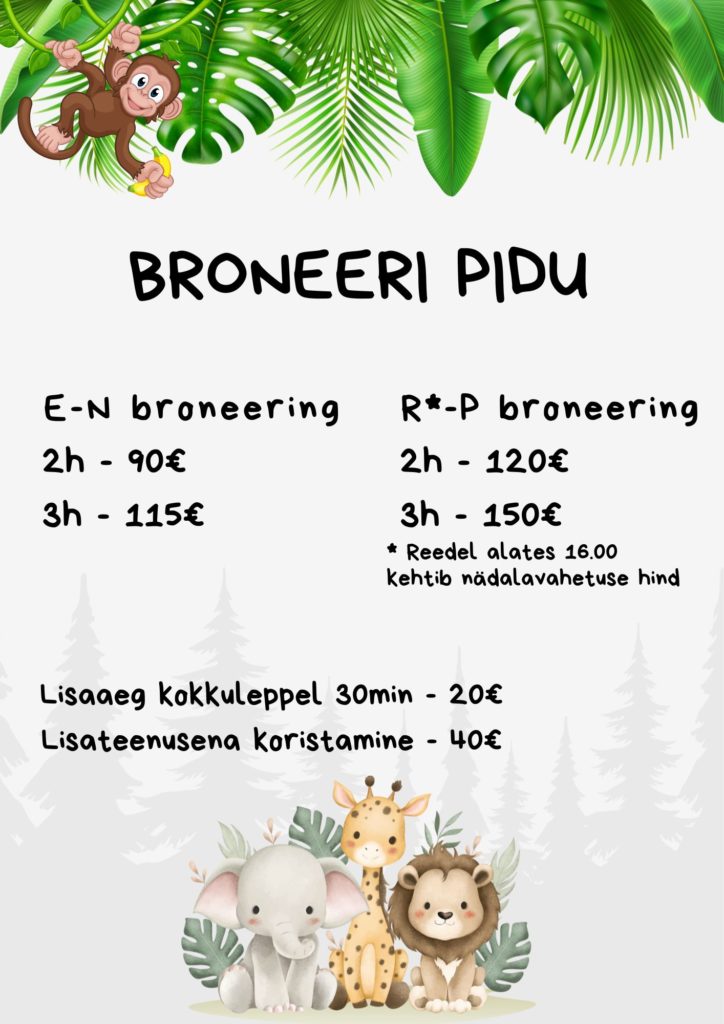 Nüüdsest on võimalik broneerida 2h või 3h pidusid paindlikuma hinnakirjaga.